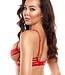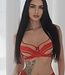 In combinatie met de string rood en doorzichtige Marjorie, een sensueel, zonnige combinatie