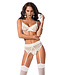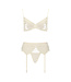 3-delig lingeriesetje in gebroken wit. BH - jarretelgordel - string