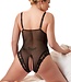 Charmante zwarte semi transparante body met open kruisje. Maten : t/m 4XL