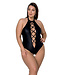 Deze zwarte body met open kruisje is ontworpen om een gewaagde en verleidelijke look te creëren. Perfect voor speciale gelegenheden waarbij je een blijvende indruk wilt achterlaten.