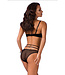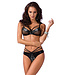 Sexy bh-set gemaakt van een mix van tule en latexachtig (wetlook) materiaal. Met ingebouwde beugels en verstelbare bandjes. De bh wordt aan de achterkant gesloten met een 2-voudig verstelbare haaksluiting. Ook wordt er een bijpassend slipje geleverd. Maat: S/M, L/XL Kleur: zwart Materiaal: 75% polyester, 15% polyamide, 10% elastaan