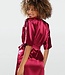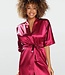 Wijnrode satijnen ochtendjas met halflange mouwen die een beetje over de billen heen valt