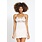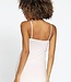 De stretch ecru viscose stof wordt afgewisseld met wit kant. De schouderbandjes zijn verstelbaar. Mooie kwaliteit viscose.