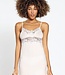 Op de afbeelding ziet de slipdress er hagelwit uit. In het echt is deze gebroken wit (ecru) met wit kant.