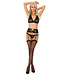 Sexy 4-delig zwart lingerie setje : BH - jarretelgordel - string - panties