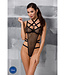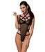 Sexy body van zwarte elastiekjes Inzetstukken aan de voor- en achterkant zijn gemaakt van zachte tule Het moderne design ziet er uniek uit en straalt veel erotiek uit BH-cups met ingebouwde beugels Meerdere malen verstelbaar in het kruis met een multi-level haaksluiting : S/M, L/XL Kleur: zwart Materiaal: 75% polyester 15% polyamide 10% elastaan