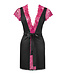 Sexy kamerjas gemaakt van elastisch materiaal en delicate, paarse bloemenkant.