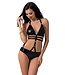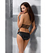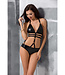 Sexy wetlook halterneck body Het halterneck bandje is verstelbaar Dankzij de vele elastische bandjes past de body zich aan elke lichaamsvorm aan. Op de rug wordt de body gesloten met de haaksluitingen op de bandjes goudkleurige ringen geven net dat beetje extra Maat: S/M, L/XL Kleur: zwart Materiaal: 75% polyester 15% polyamide 10% elastaan