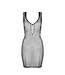 Verleidelijk, mouwloos net-jurkje van grofmazig mesh-materiaal.
