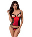Elegant tweedelig pak van doorschijnend tule en elastisch stretchmateriaal De borsten zijn zichtbaar en de halve cups zijn gewatteerd De bandjes zijn gemaakt van elastische banden en deze passen zich daardoor automatisch aan Het bepaalde iets wordt gegeven door de wetlook elementen over de borst Op de rug met een in. De lengte is voorzien van een 2-voudig verstelbare haaksluiting. Plus een bijpassende string in hetzelfde design. Maat: S/M, L/XL Kleur: rood 15% Polyamide 10% Elastaan