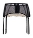 Gemaakt van zwart rekbaar tule met beigegoudkleurig stiksel aan de onderkant.