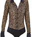 Deze body is gemaakt van iets rekbare panterprint stof in combinatie met de mouwen en de kraag van satijn. Hierdoor is dit een heerlijk zacht kledingstuk. Deze body is geschikt voor de maten 36, 38, 40, 42 en eventueel ook voor maat 44. Doordat de body wat strakker om je lichaam valt, worden je vrouwelijke vormen benadrukt, maar wel op een mooie manier. Als je wat meer vrouwelijke rondingen hebt, zal deze body ook zeker mooi staan. Ook als je een buikje, bredere schouders of wat dikkere bovenarmen hebt, kun je deze body prima dragen zonder dat je kleding té strak komt te zitten.