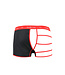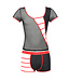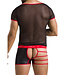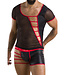 Zwart rood lingerie set voor mannen met sexy design en stoere uitstraling Lees meer..