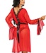 Rode Mesh Peignoir Valentina - Rood doorzichtig tule met zwarte accenten - sensuele ochtendjas - Ges..