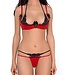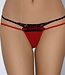 Leuk detail is dat het ontwerp van de sexy kwart cup beha rood met zwart exact terugkomt in het ontwerp van deze string.