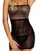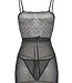 De slipdress Emy met kant en zilverstiksel wordt geleverd inclusief een zwart tulen string, waarin een zwart katoenen kruisje is aangebracht.