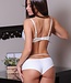 Mooie brazilian string in gebroken witte stof met romantische doorzichtig kant waarin ..