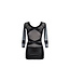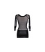 Verleidelijke strapless jurk gemaakt van een combinatie van zachte tule en mat latexachtig materiaal.