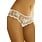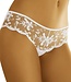 Wit doorzichtig broekje. Aan de voorkant een bloemenmotief. De achterkant is van een zacht glanzende stof met een v -uitsnijding en rijgvetertje. Lees meer..