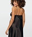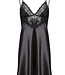 Zwart satijnen nachtjurk met kant Francis. Met spaghettibandjes die verstelbaar zijn.