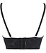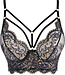 Deze zwarte longline bh met blauw en goud stiksel op een ondergrond van prachtig glanzend kant zal jouw borsten op klassieke wijze accentueren, zonder hun natuurlijke schoonheid te verbergen.